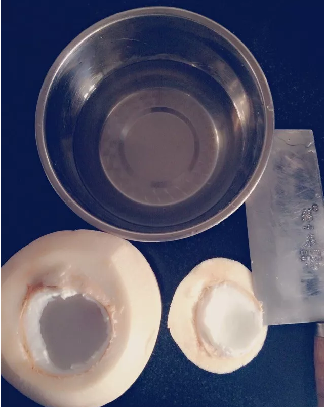 1. 在椰青上方开一个口,这时我是把原椰浆倒出来了,