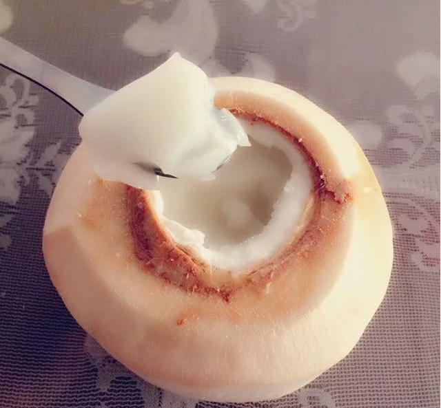 椰青的容量,加入吉利丁粉、糖霜搅匀融化,倒回椰青)。
